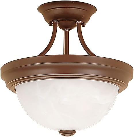 From the details in the faux alabaster glass, to the double coated rubbed bronze finish, this flush mount is not.